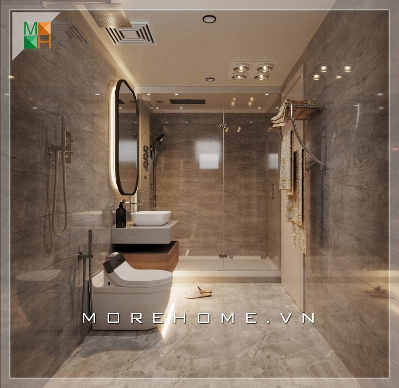 Phòng tắm phong cách hiện đại cho chung cư, nhà phố, biệt thự do Morehome thi công lắp đặt