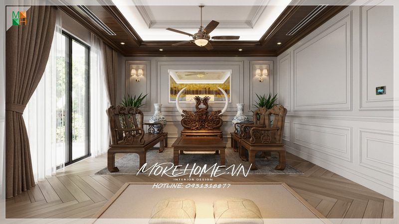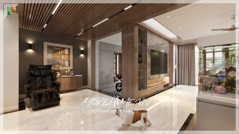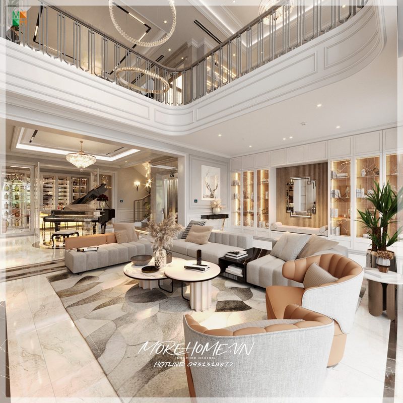 Sự kết hợp hài hòa giữa ý tưởng thiết kế với cách bố trí nội thất đã tạo nên 1 không gian phòng khách cô cùng tuyệt vời. Đây là không gian quây quần tụ họp của các thành viên trong gia đình và là nơi đón tiếp những vị khách quý khi đến nhà.