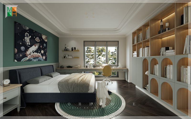 Thiết kế kệ tủ âm tường trong phòng ngủ mang tới không gian gọn gàng thoáng đãng mang tới đời sống hiện đại.
