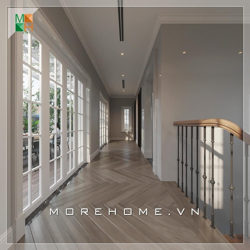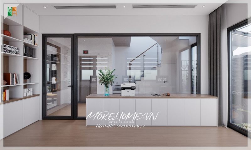 Ánh sáng lan tỏa khắp không gian phòng nhờ vào cửa kính vừa mang lại thẩm mỹ cao dễ dàng đón nhận ánh sáng và bầu không khí từ bên ngoài vào bên trong