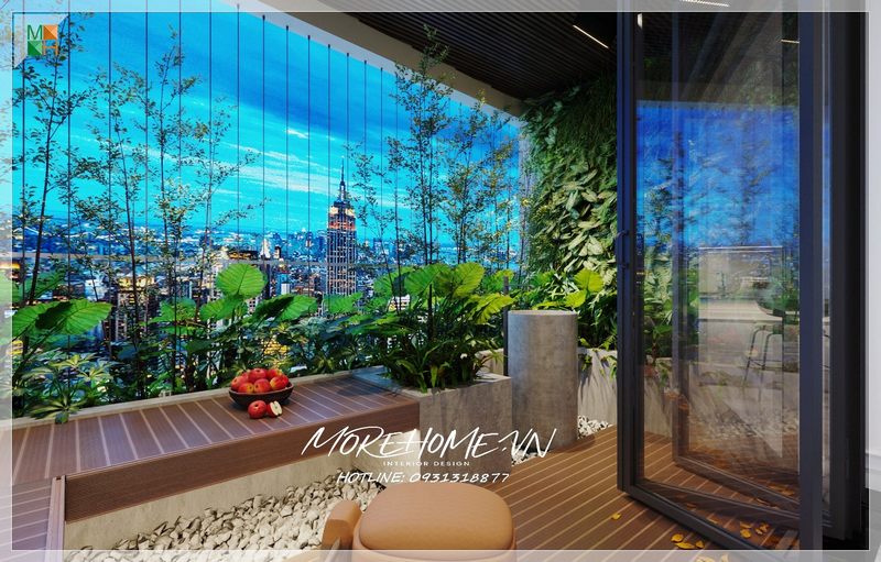 Tận dụng ánh sáng tự nhiên bằng cửa kính thoáng đãng không khí được lưu thông dễ dàng tạo cảm giác thoải mái