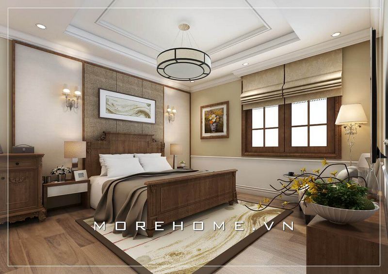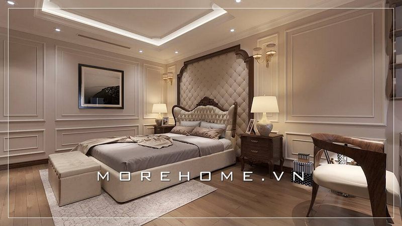 Mẫu thiết kế giường ngủ biệt thự phong cách tân cổ điển đầy sang trọng