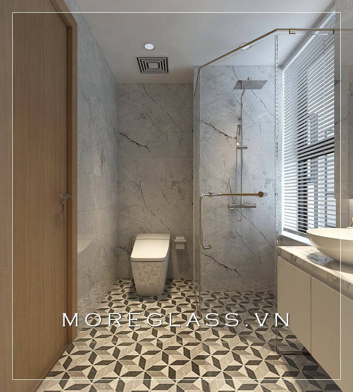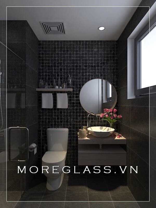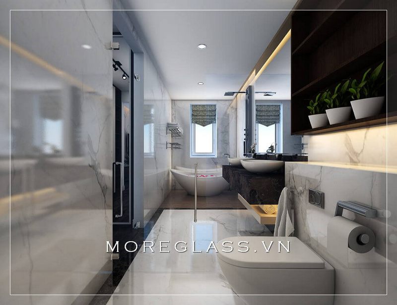 Mẫu phòng tắm được làm từ kính cường lực để phù hợp với căn hộ chung cư cao cấp.