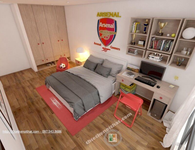 Thiết kế nội thất phòng ngủ hiện đại và tiện lợi cho căn hộ chung cư.