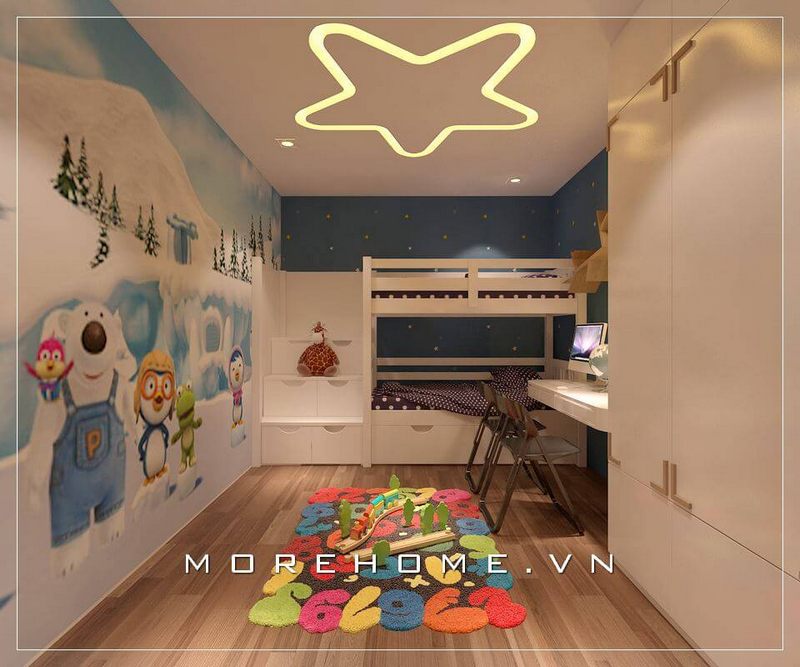 Mẫu giường tầng gỗ màu trắng với thiết kế hiện đại và ấn tượng sẽ giúp con bạn có một không gian nghỉ ngơi và học tập thoải mái nhất, đồng thời tiết kiệm không gian tối đa.