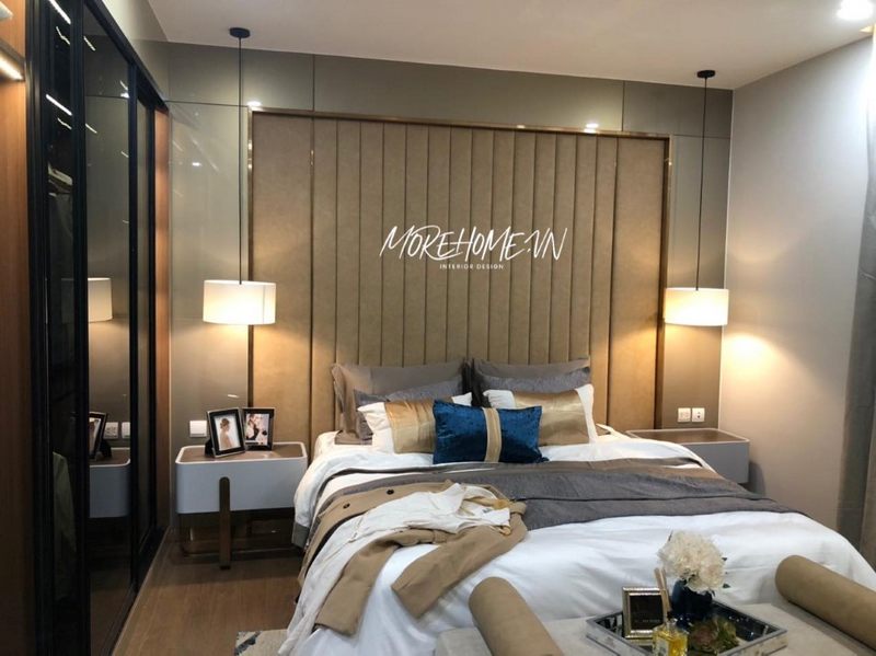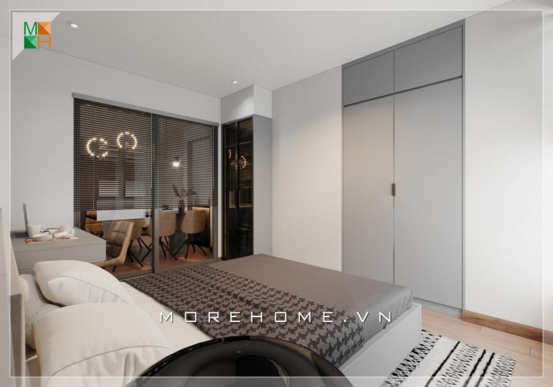 Phòng ngủ của căn hộ chung cư được trang bị nội thất hiện đại và tiện dụng, tạo nên một cảnh ấn tượng.