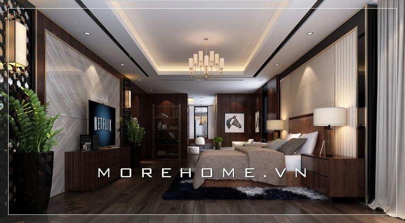 . Mẫu thiết kế phòng ngủ biệt thự hiện đại với sự đẳng cấp vô cùng rõ ràng, gam màu nâu trầm tạo nên không gian ấm áp và lãng mạn.