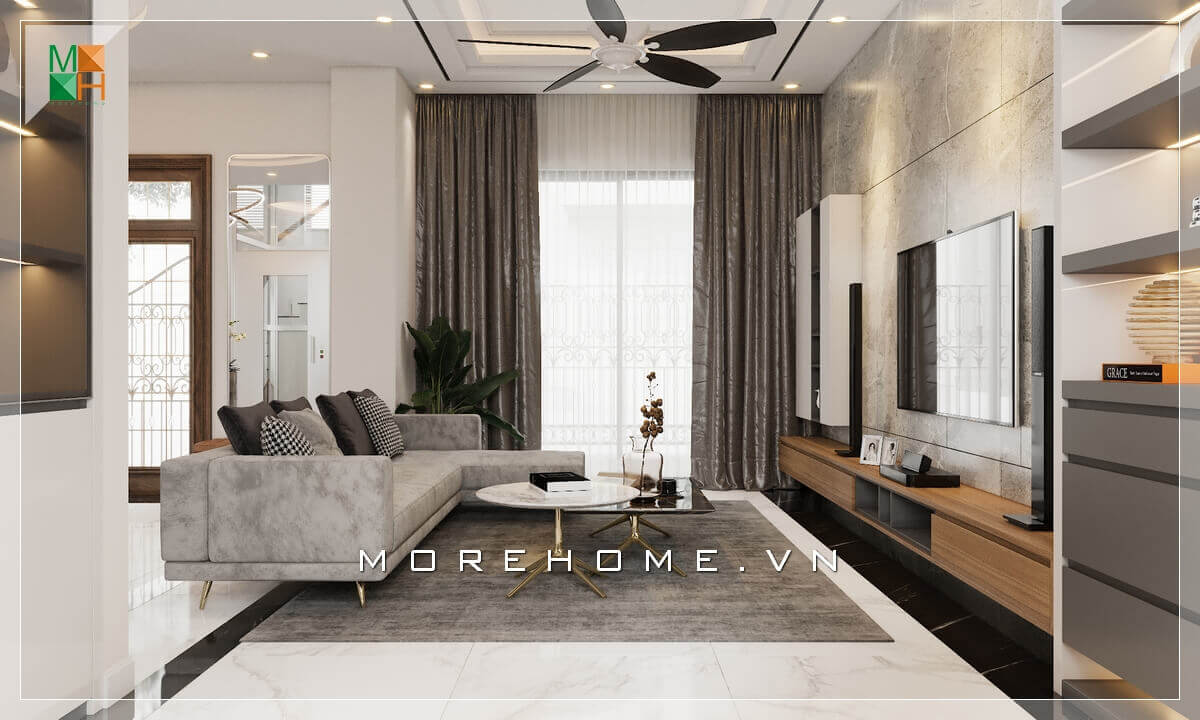 Phòng khách nơi đón tiếp bạn bè, người thân của gia chủ nên luôn được quan tâm chú trọng phần thiết kế nội thất hiện đại để nâng tầm vẻ đẹp không gian sống gia đình bạn