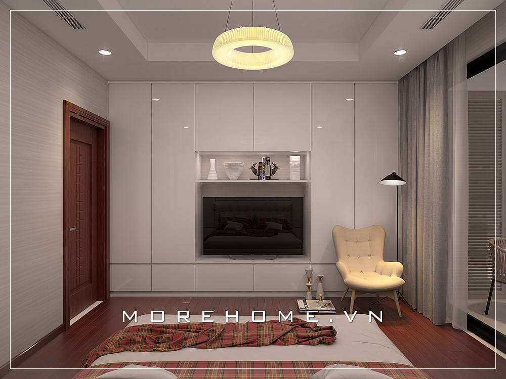Mẫu tủ áo cánh mở hiện đại gỗ công nghiệp, gam màu trắng nhẹ nhàng tạo nên nét hài hòa, sang trọng cho không gian phòng ngủ chung cư